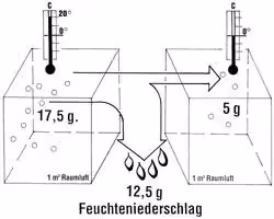 unterschritten wird. Bei bauphysikalisch korrekt aufgebauten Konstruktionen wird das hier entstehende „Kondenswasser“