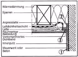 Wirksamkeit und Dauerhaftigkeit der Luftdichtheitsschicht hängen wesentlich von ihrer fachgerechten Ausführung ab. Die Verarbeitungsrichtlinien der verwendeten Materialien sind zu berücksichtigen.“